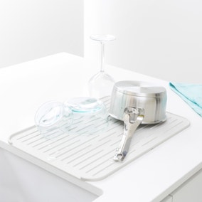 Designed by Brabantia, this dark grey microfibre dish drying mat is ideal on the worktop when handwashing pots, pans and glassware and features a practical non-slip surface. Machine washable at 60 degrees, this microfibre dish drying mat is foldable for ease of storage and absorbs 7 times its weight in water.