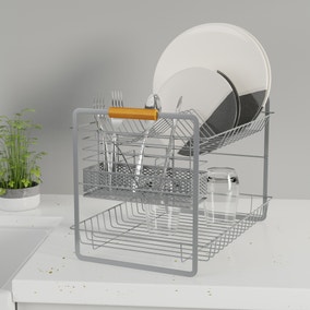 Made from metal with bamboo handles, this practical dish drainer has been finished in a grey colour and is perfect to place your draining dishes and cutlery for neat space saving on your worktop.