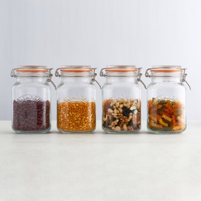 * 0.85 litre capacity * Stylish alternative to plastic storage * Airtight seal glass lid * Dishwasher safe Great for storing biscuits, rice, sweets and more, this 0.85 litre storage jar is a great space saving solution for your counter top. It’s designed in a stylish curved silhouette with it’s staple piece Kilner logo, and…