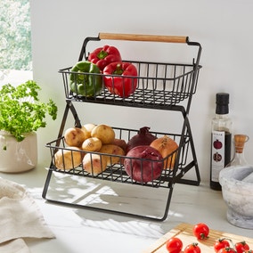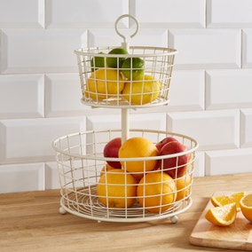 * Made from sturdy and durable steel * Provides air circulation to keep fruits fresh for longer * Divides into two square baskets * Large capacity Made from steel and finished in an elegant cream colourway, this two tier wire fruit basket offers additional storage for your fresh fruits for neat space saving storage. Easy…