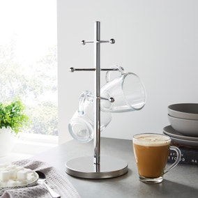* Made from sturdy and durable steel * Holds up to 6 mugs * Sleek and modern finish * Easy to wipe clean Do you have too many mugs and not enough storage? Then look no further. With our sleek chrome mug tree you can space an enormous amount of space, with it holding up…